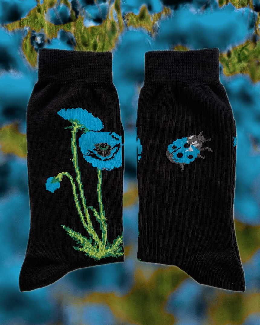 Οι ζωηρές παπαρούνες και οι τρυφερές πασχαλίτσες δημιουργούν ένα παραμυθένιο σκηνικό πάνω στις κάλτσες, ιδανικό για να φωτίσει κάθε σου εμφάνιση. Το σχέδιο αποπνέει φυσική κομψότητα και χαρούμενη διάθεση, με μια παιχνιδιάρικη αλλά και ρομαντική πινελιά που δεν περνά απαρατήρητη.